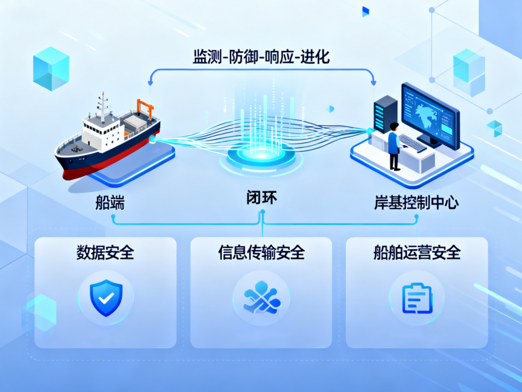 凭借多年技术积累,中远海运科技率先跳出“被动合规”局限,打造了船岸一体的船舶网络安全防护运营平台,形成了“监测-防御-响应-进化”闭环的安全底座方案,构建了船岸一体网络安全服务模式,保障数据安全、信息传输安全与船舶运营安全,将船舶网安从“事后补救”推向“事前预防、事中控制”的全新阶段。