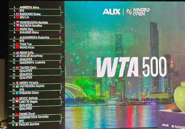 同期开打的WTA500宁波网球公开赛也官宣了正赛签表。俄罗斯新星米拉-安德列娃、意大利小钢炮鲍里妮、哈萨克斯坦名将莱巴金娜和俄罗斯人亚历山德洛娃位列单打前四号种子。中国球员首轮对阵:朱琳vs拉杜卡努、王曦雨vs施耐德、袁悦vs王欣瑜、张帅vs库德梅托娃。