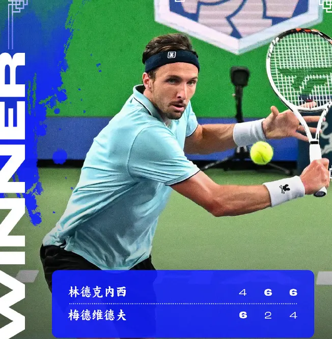 第二场较量,瓦舍罗的表哥、法国人林德克内西延续火热手感,以4-6 6-2 6-4逆转前赛会冠军、俄罗斯名将梅德维德夫,职业生涯首次跻身大师赛男单决赛。表兄表弟会师决赛,也创造了男子网坛的一段佳话。