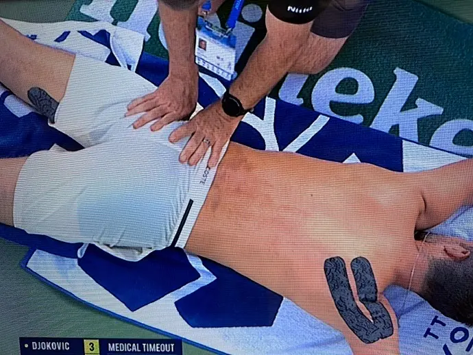 在这场对决中,德约科维奇开场后不久就多次拉伸左腿,底线攻防之后,多次蹲地喘息,移动也比较缓慢,很快就接受了医疗暂停。彼时有观赛球迷认为,这是德约科维奇在演戏,是他一贯的策略,肯定会边演戏边横扫。